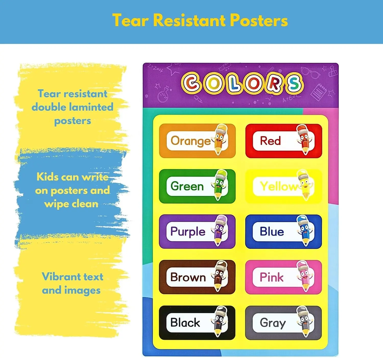 ·MAKE LEARNING FUN FOR YOUR KIDS AND STUDENTS: These posters are perfect for classrooms, homeschooling, playrooms, and educational settings, aiding teachers and parents in teaching young learners. Kids can write on the posters with erasable markers and wipe them clean.