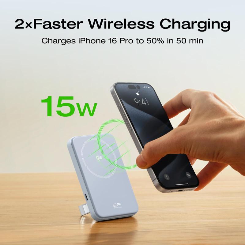 5. EF ECOFLOW Rapid Power Bank, 5000mAh Qi2 Certified Wireless Magnetic Portable Charger, 30W Max Fast Charging Battery Pack with Built-in USB-C Cable & Stand for iPhone16/15/14/13/12 Series Only