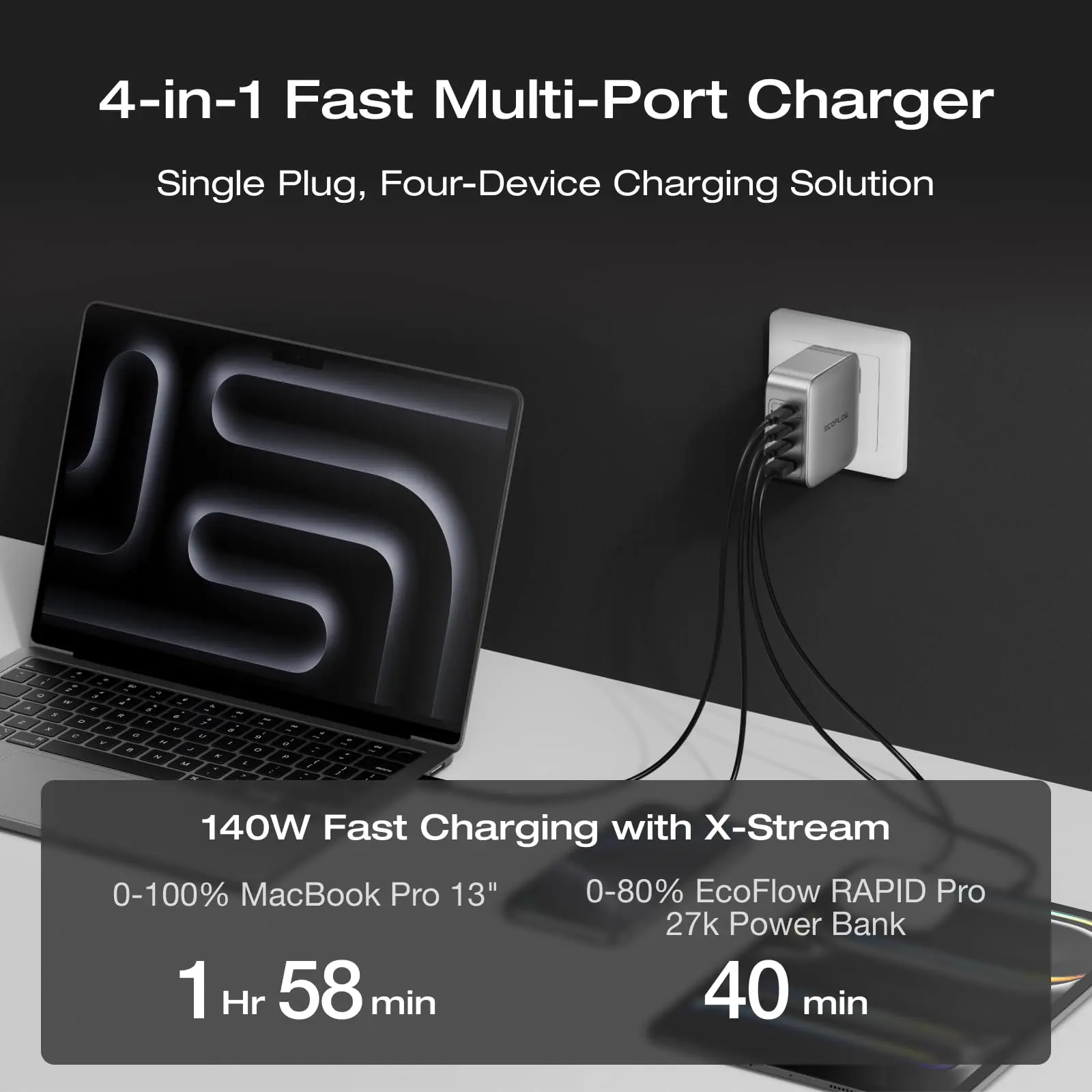 EF EcoFlow Rapid Pro Charger (140W, 4 Ports), 140W (Max) USB-C, 4-in-1 Multi-Device Charger