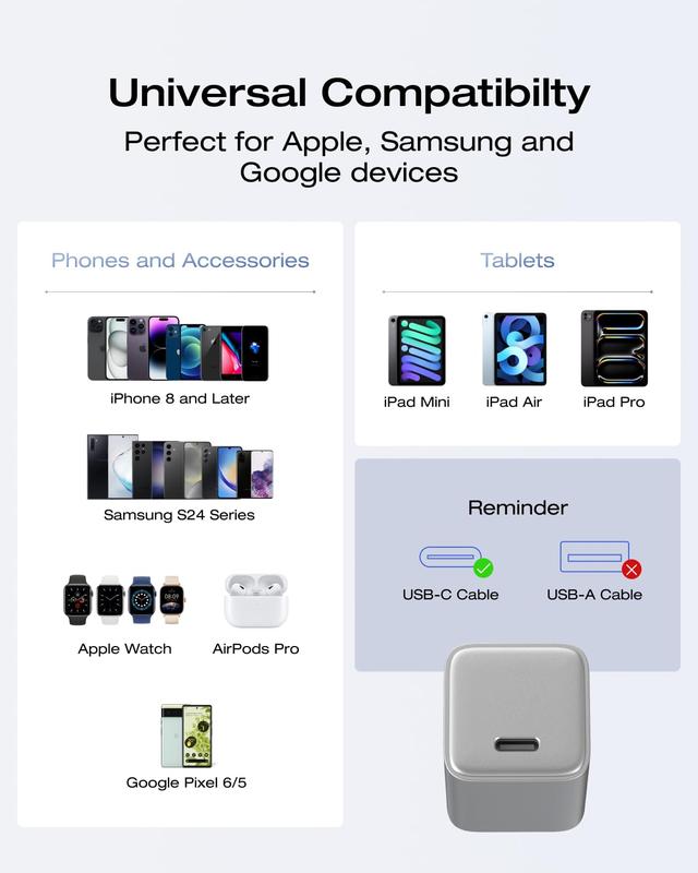 ·Efficient Charging and Wide Device Compatibility: This 3-port fast charging station can charge 3 devices at the same time. Designed to work seamlessly with a wide range of devices, including iPhone 15 and older Series, various iPad models, AirPods, and Apple Watch. This versatile charging block is also compatible with many Android smartphones including Samsung Galaxy and Google Pixel, making it an all-in-one solution for your tech.
