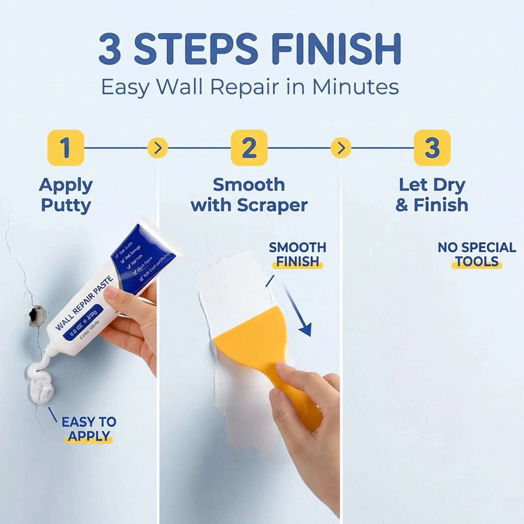 3Pcs Efficient Drywall Repair Kit with Scraper, 2026 Upgrade Quick Drying Wall Repair Paste for Cracks and Holes, Multi Functional Wall Mending Agent for DIY Home Fix