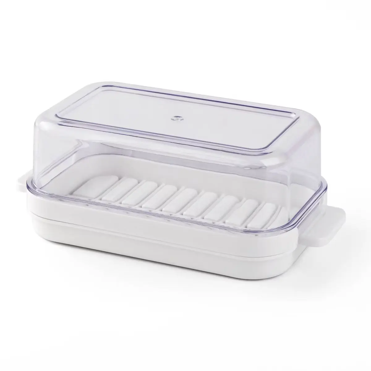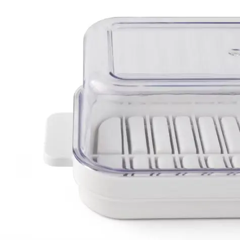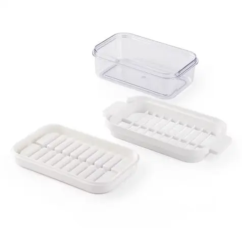Easily slice and store butter with our efficient plastic butter slicer. Made of durable plastic, this slicer allows for quick and precise slicing. Keep your butter fresh and organized in its designated storage area. Simplify your butter preparation with our butter slicer.
