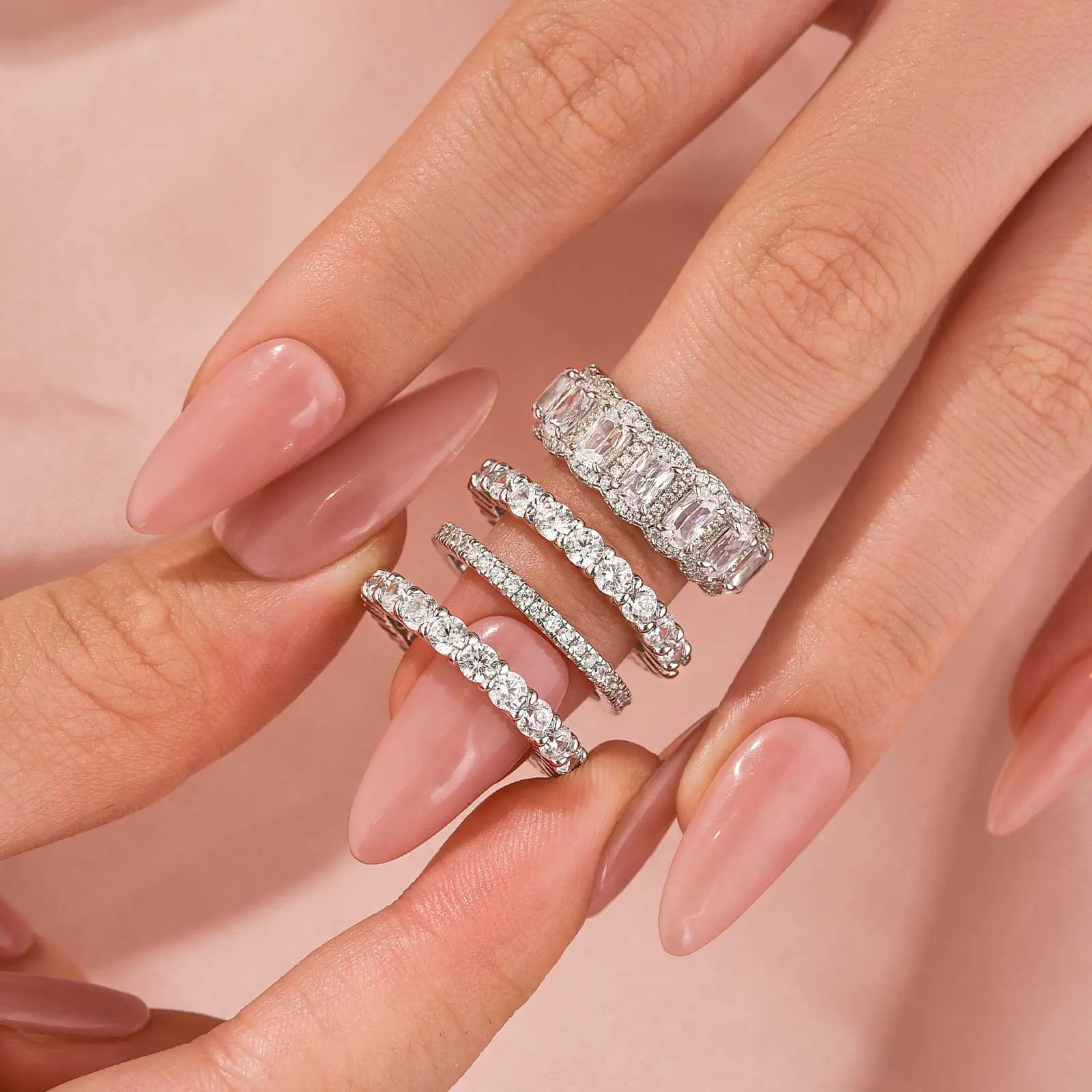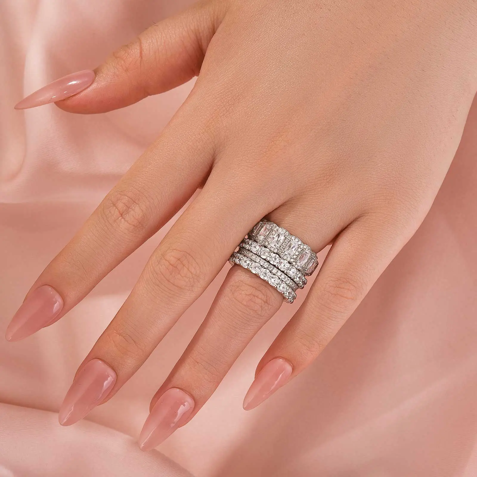 Wear all four rings stacked for a dramatic bridal look, or mix and match individually for different occasions. Perfect as an engagement set, anniversary gift, or TikTok trending jewelry stack.