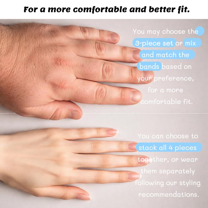 Noticed: When stacking all four rings, the fit might be a bit snug, so we recommend ordering half a size up.