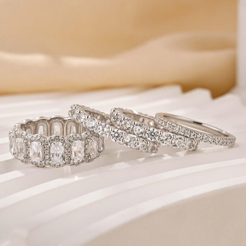 Make a statement with the Effinny Jewelry 4PC Luxury Wedding Ring Set, designed for stacking and mixing to create a unique, sophisticated look. Whether for weddings, engagements, parties, or everyday wear, this ring set adds a touch of elegance and brilliance to any occasion.