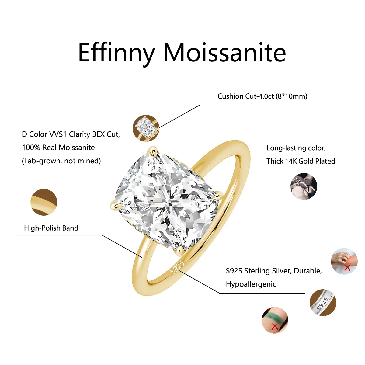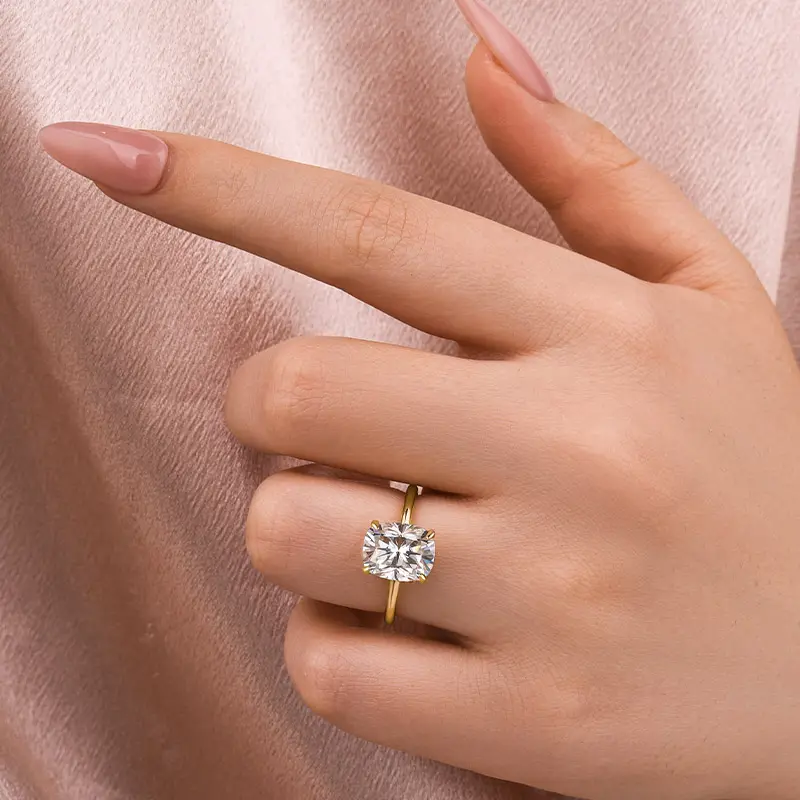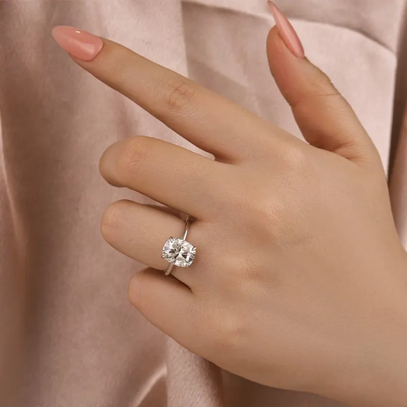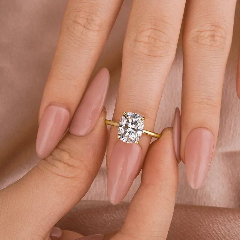 ·Sparkling Cushion Cut Moissanite captures light beautifully.