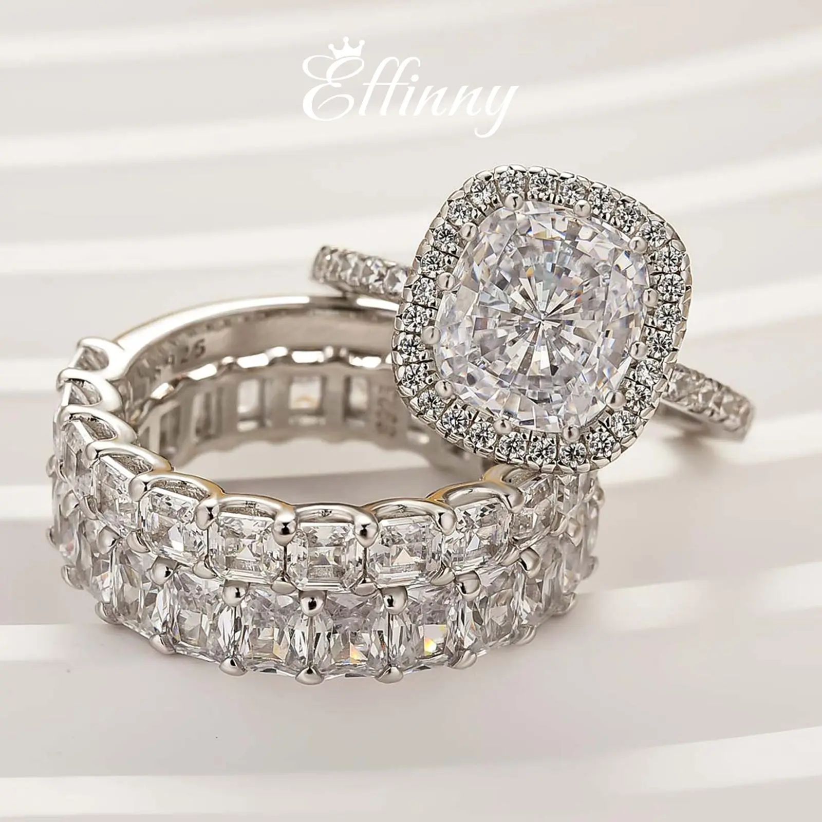Band 1: Radiant Cut Full Eternity Band (3×3mm stones).