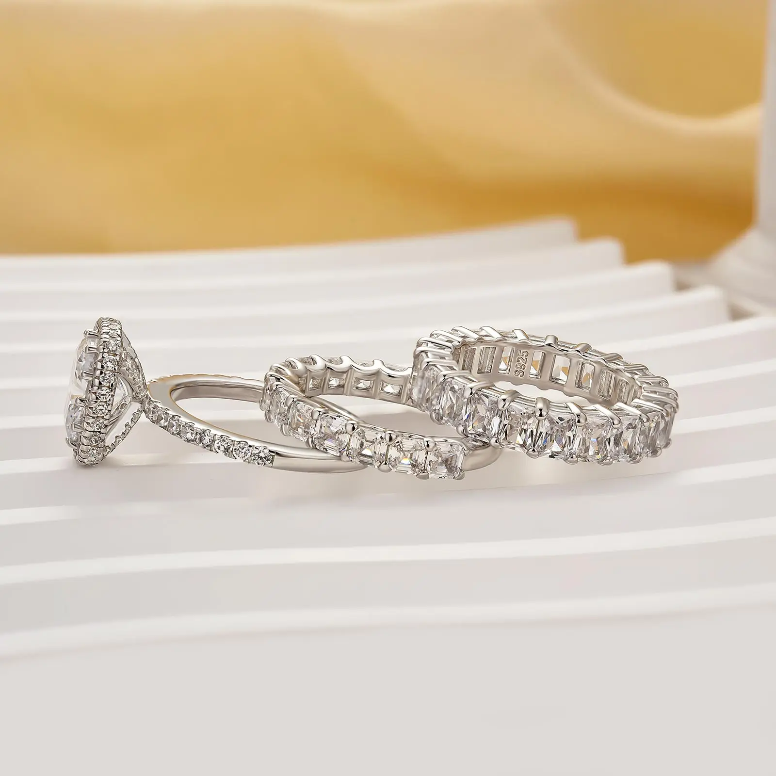 Band 2: Radiant Cut Half Eternity Band (4×3mm stones).