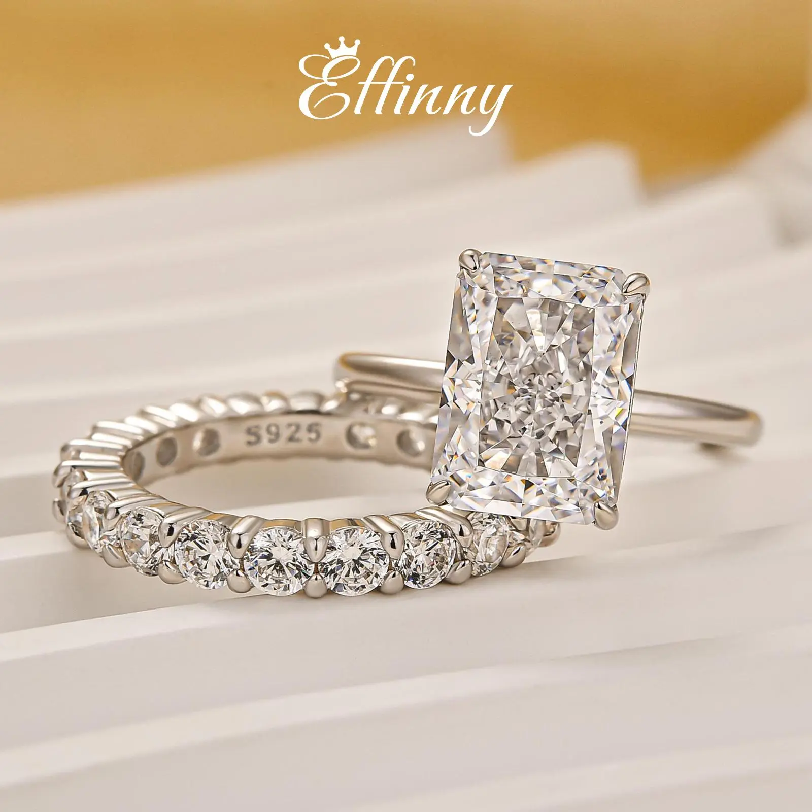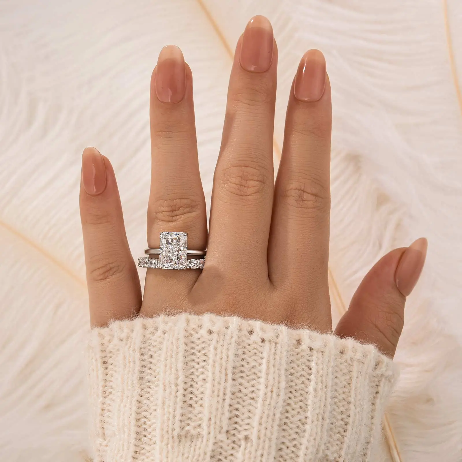A dazzling 4.5Ct(8*11mm) radiant brilliant cut stone paired with a matching wedding band — this two-piece set captures light from every angle, making it the perfect symbol of love and elegance.