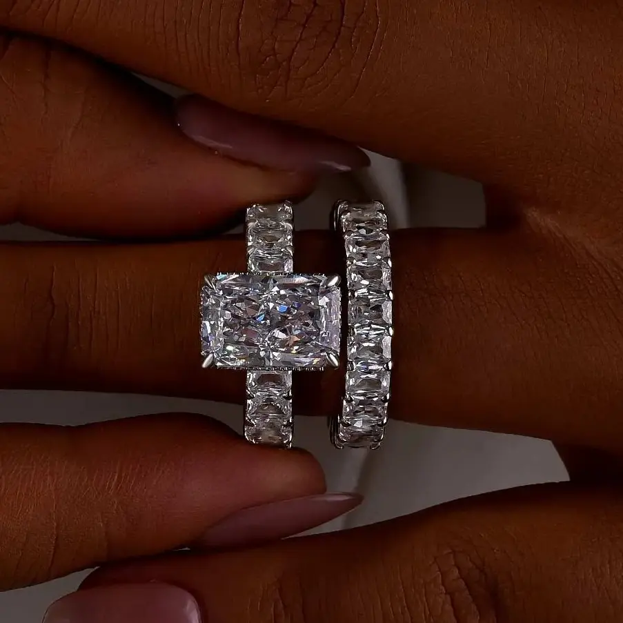 💎 4.5ct Radiant-Cut Brilliance — dazzling stones (8×12mm center) that catch every ray of light.