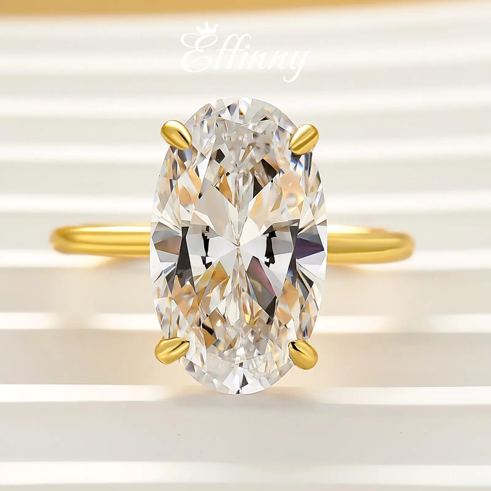 Stone: 6.5ct (9×15mm) 5A cubic zirconia – flawless brilliance, just like a real jewelry
