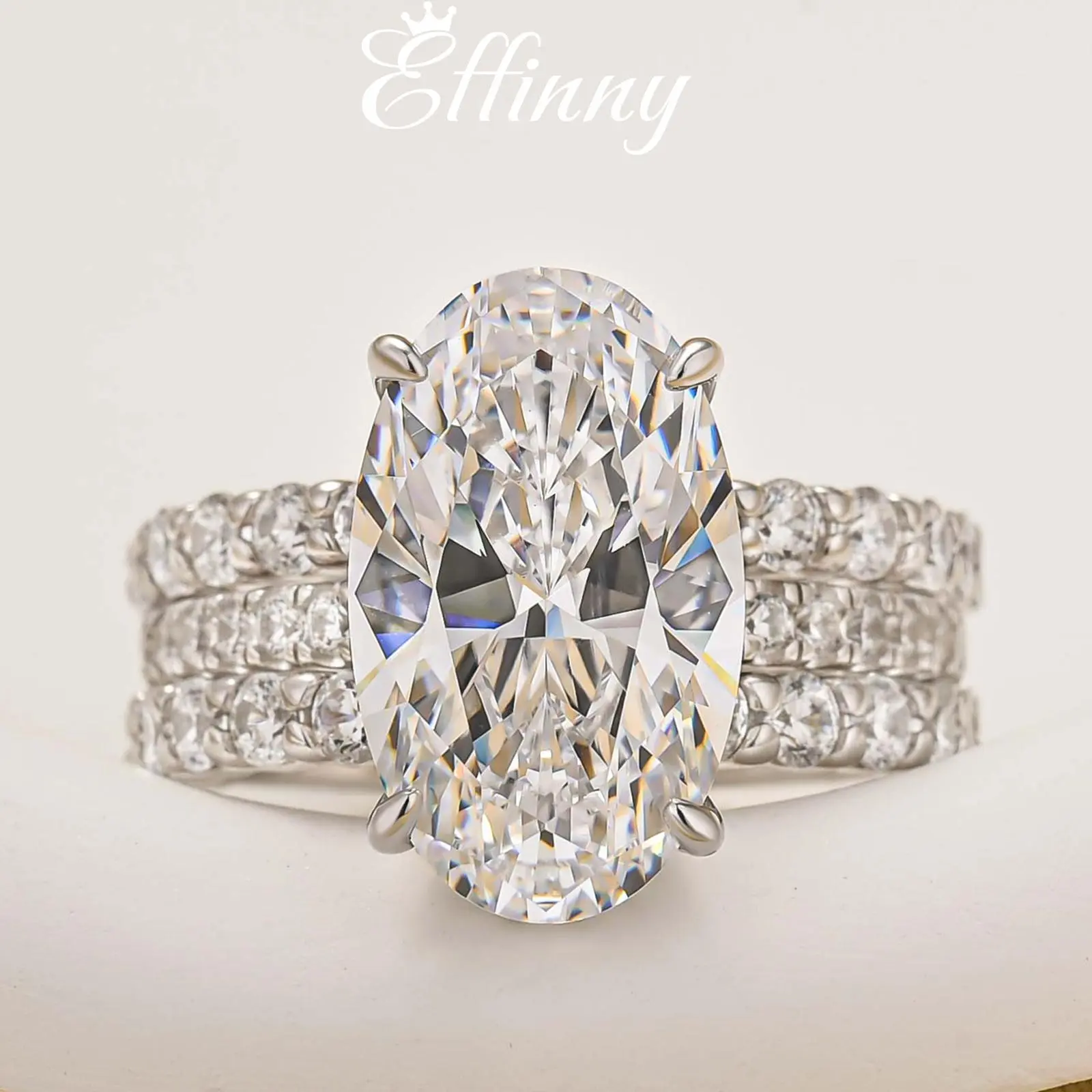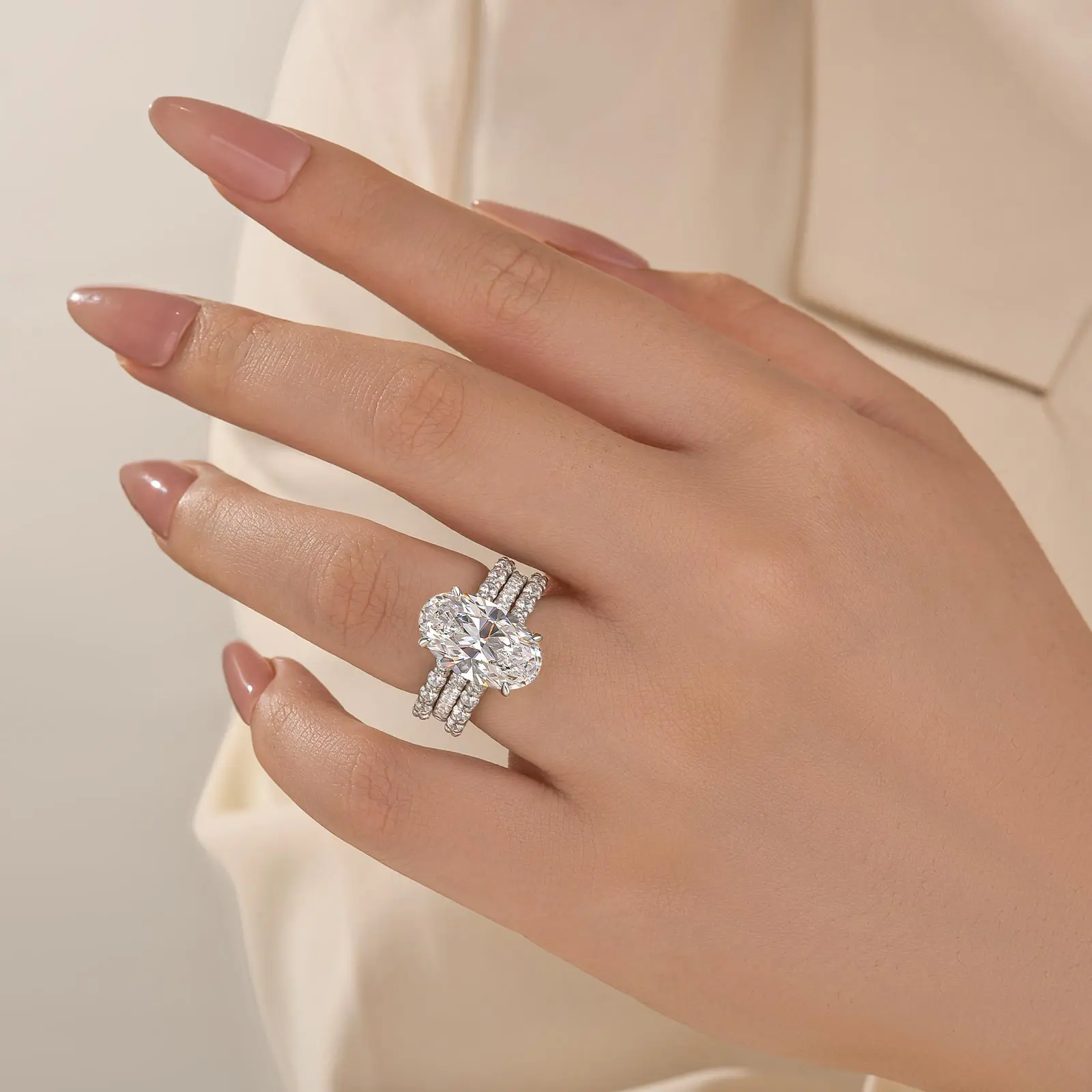 7.0ct (9*15mm) Oval Cut Engagement Ring + 2 open-band half-eternity rings