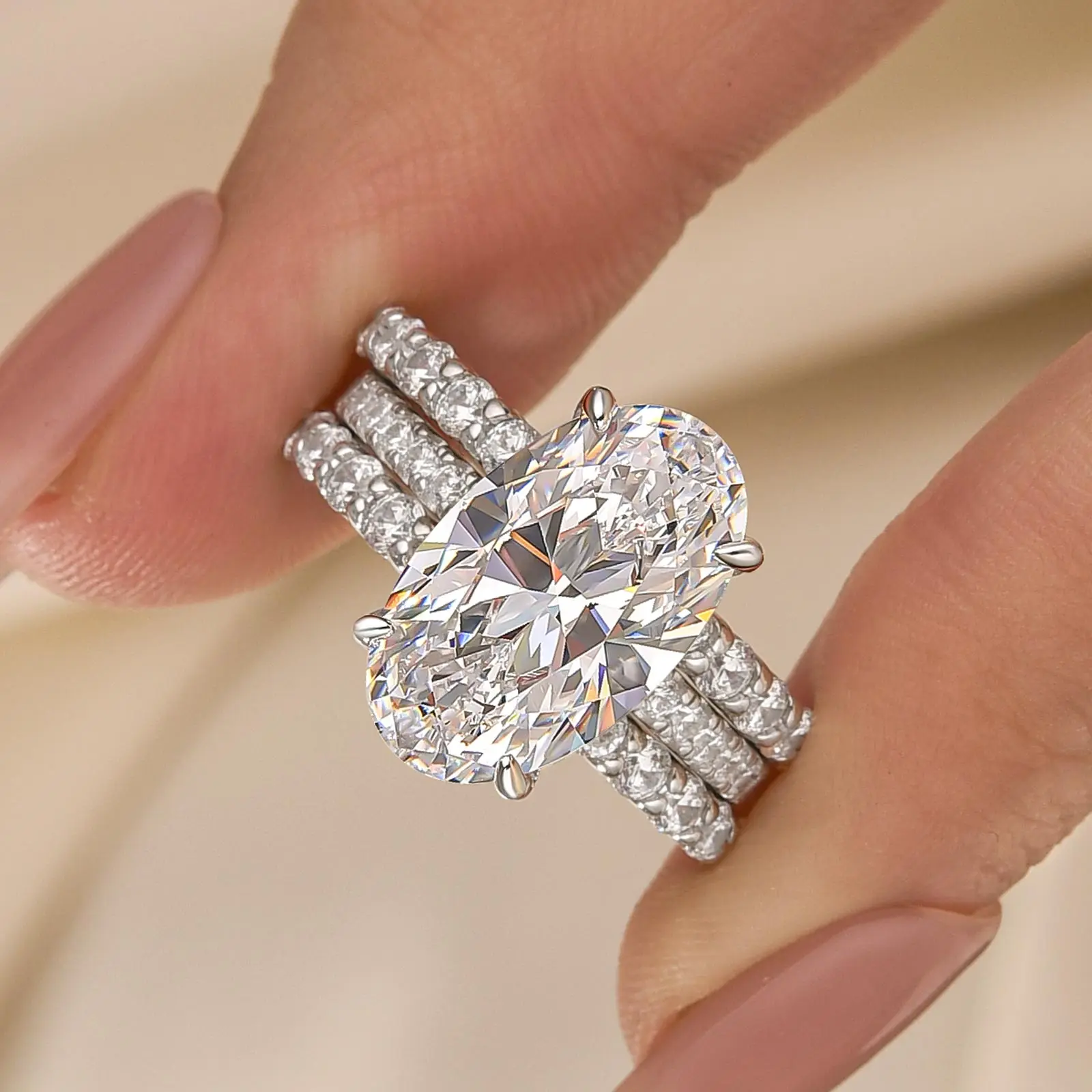 ✨ Main Stone: 7.0ct (9*15mm) Oval Cut, 5A Cubic Zirconia – radiant sparkle from every angle