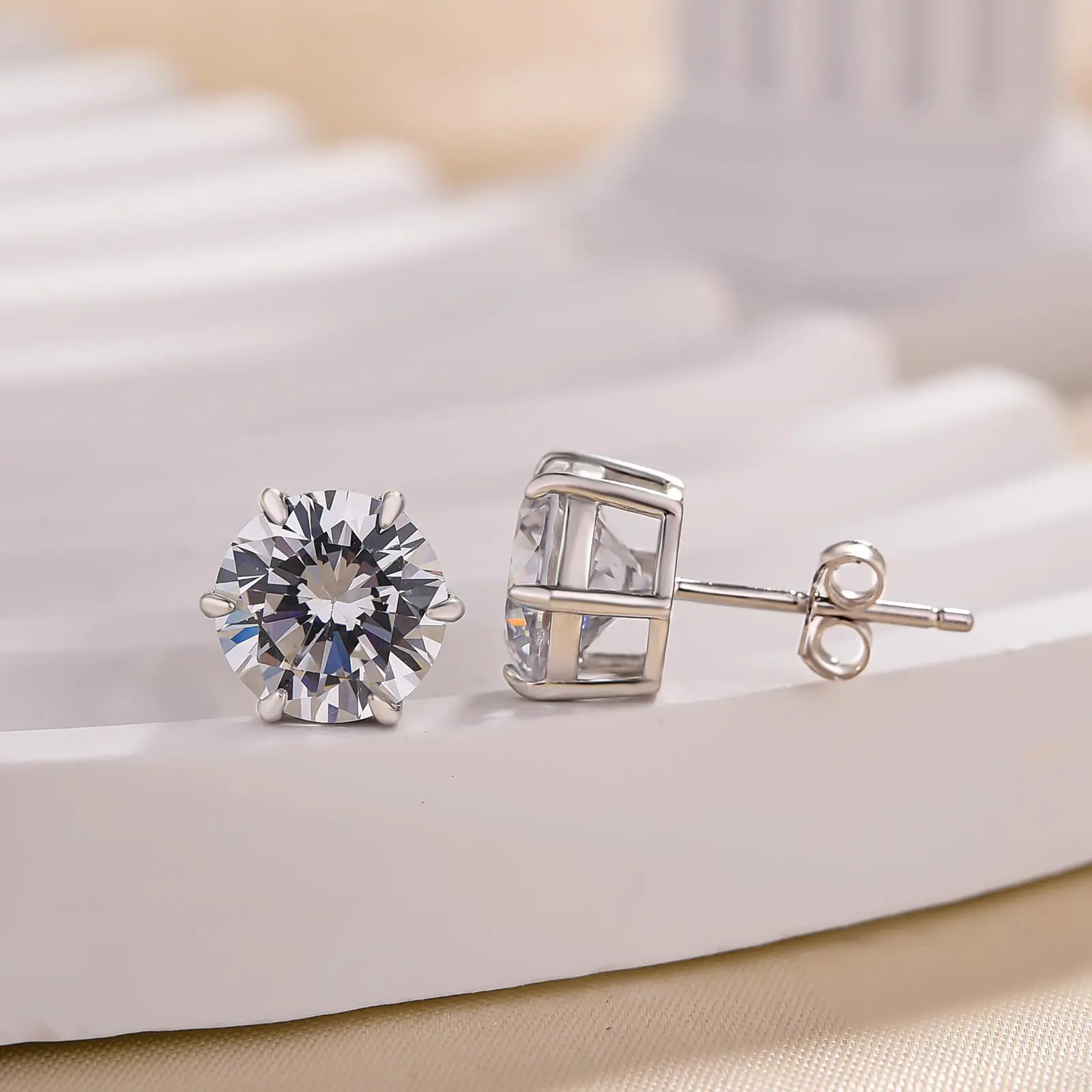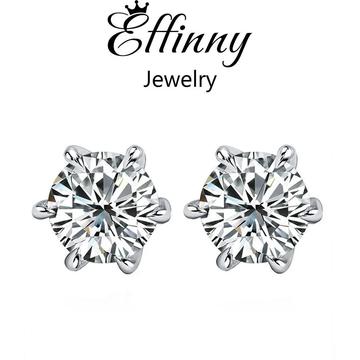 ✨ Effinny Jewelry Round/Cushion Cut S925 Sterling Silver Stud Earrings ✨