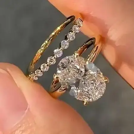 Turn heads with the Effinny Jewelry 5.5ct Oval Cut 2PC Wedding Ring Set, designed for bold beauty and everyday shine. Made from S925 sterling silver with a gold-plated finish, this bridal ring set features a brilliant oval cut center stone and sparkling 5A cubic zirconia accents.