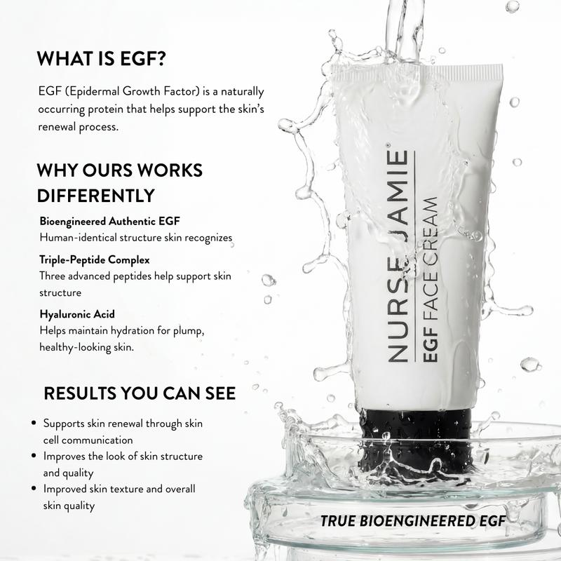 This advanced EGF face cream is powered by true bioengineered EGF with a human-identical structure. It pairs with advanced peptides and hyaluronic acid to support skin communication, structure, and hydration. Unlike traditional moisturizers, this formula supports the skin’s natural renewal process and overall skin quality over time.