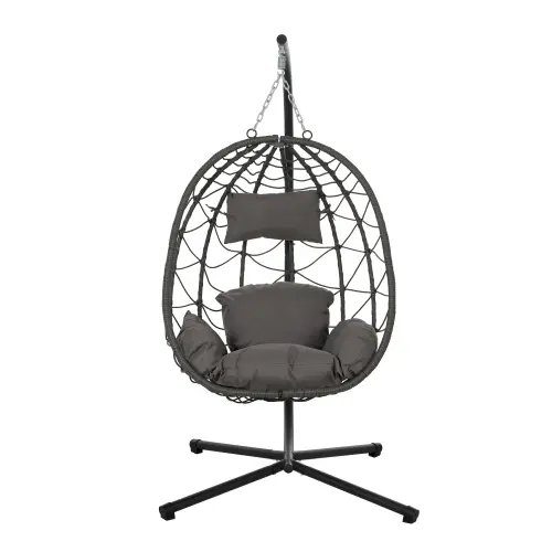 【Bellemave】Egg Chair with Stand Indoor Outdoor Swing Chair Patio Wicker Hanging Egg Chair Hanging Basket Chair Hammock Chair with Stand for Bedroom Living Room Balcony