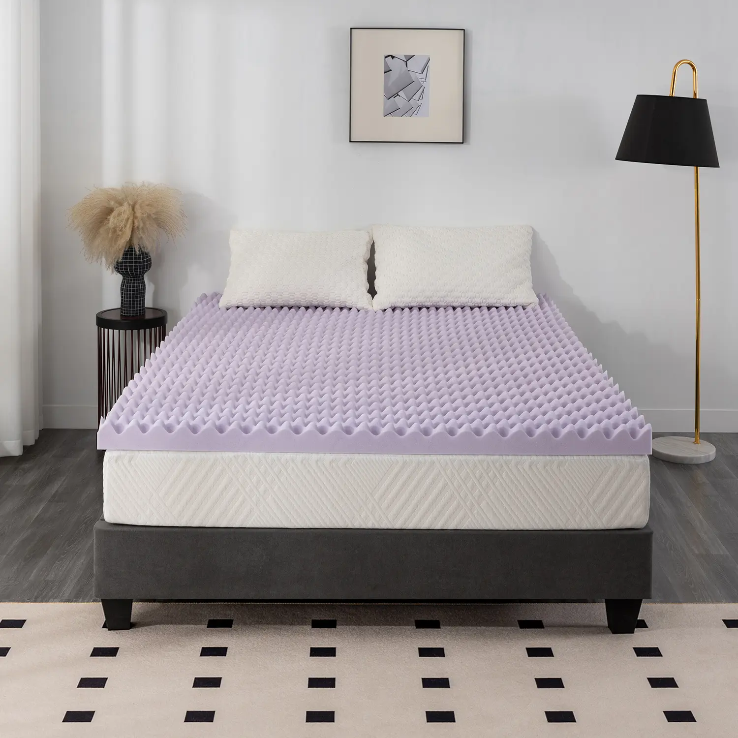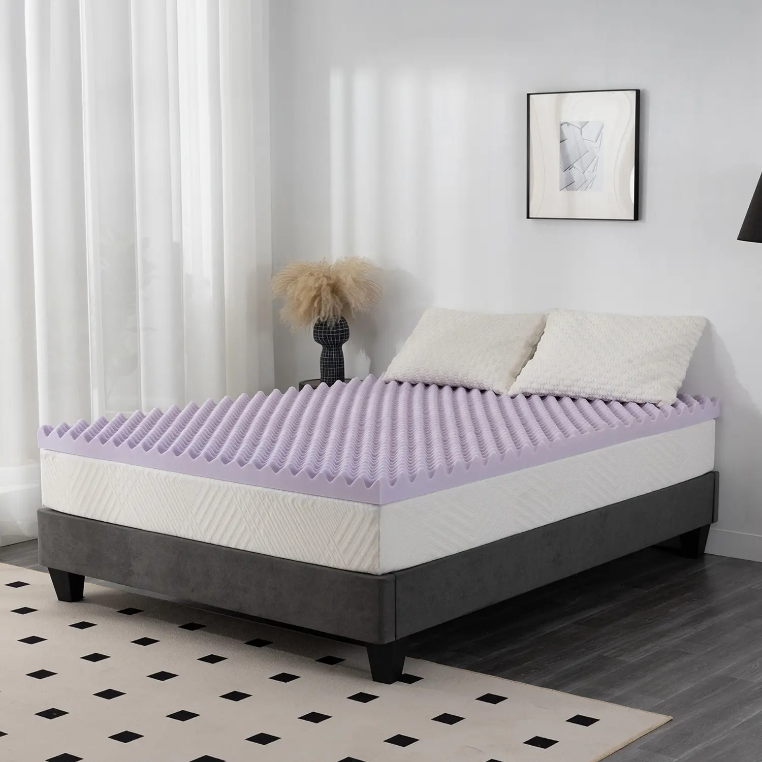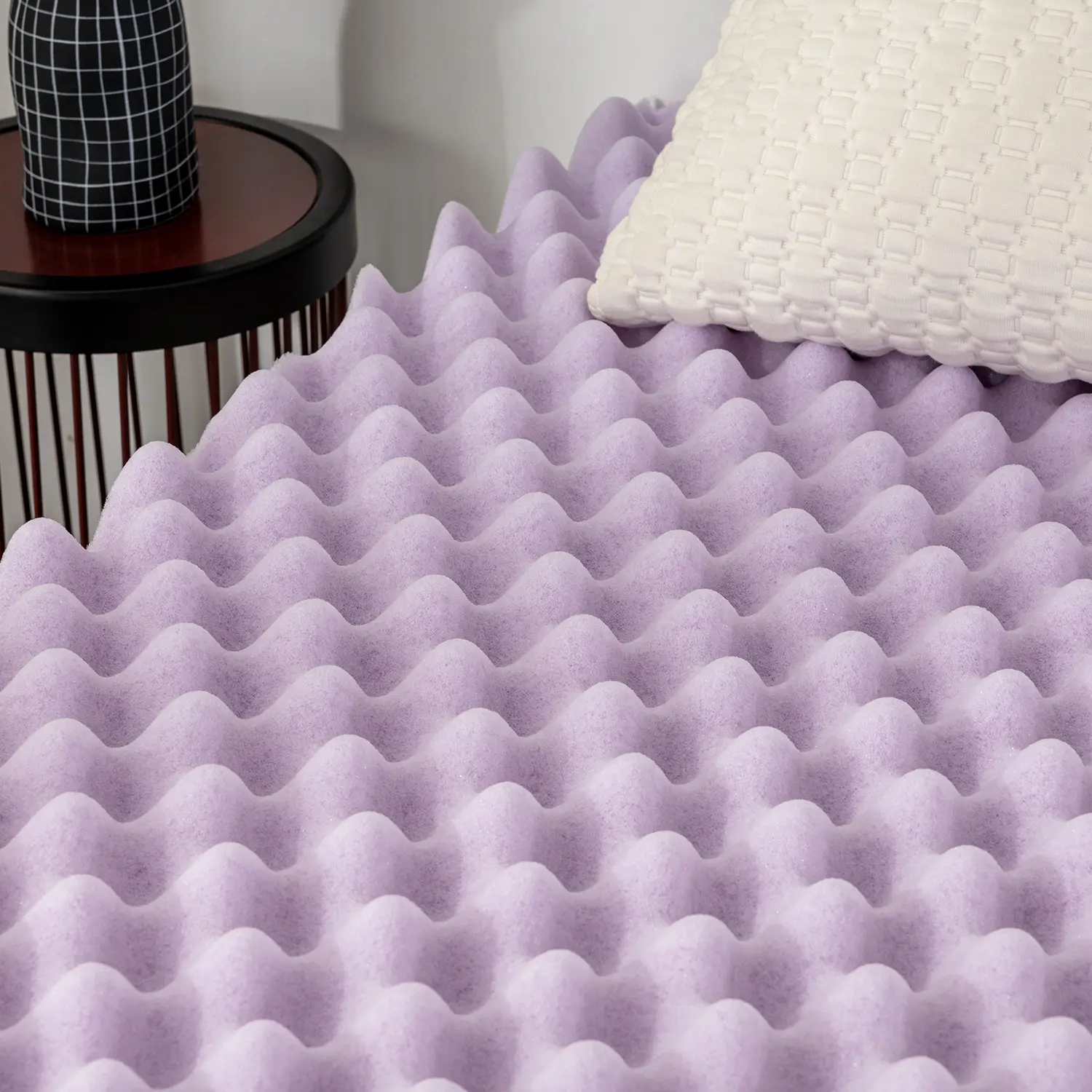 ·Aesthetic Design: Elevate Your Bedroom with the EGO Egg Crate Memory Foam Mattress Topper Twin Size. The stylish purple hue adds a touch of elegance to your bedding, making it a standout feature in any bedroom.