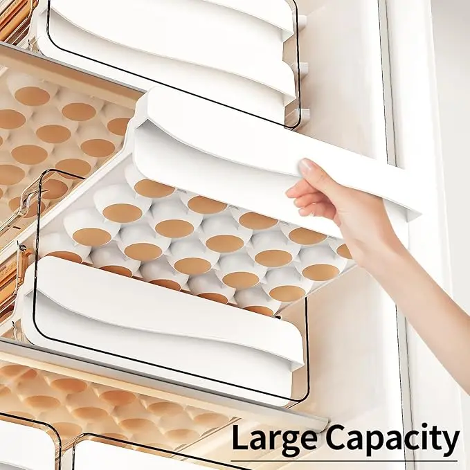 Egg Holder for Fridge, 60 Count Large Capacity Egg Storage Container with Pull-Out Drawer, Clear Stackable Egg Organizer for Refrigerator & Countertop