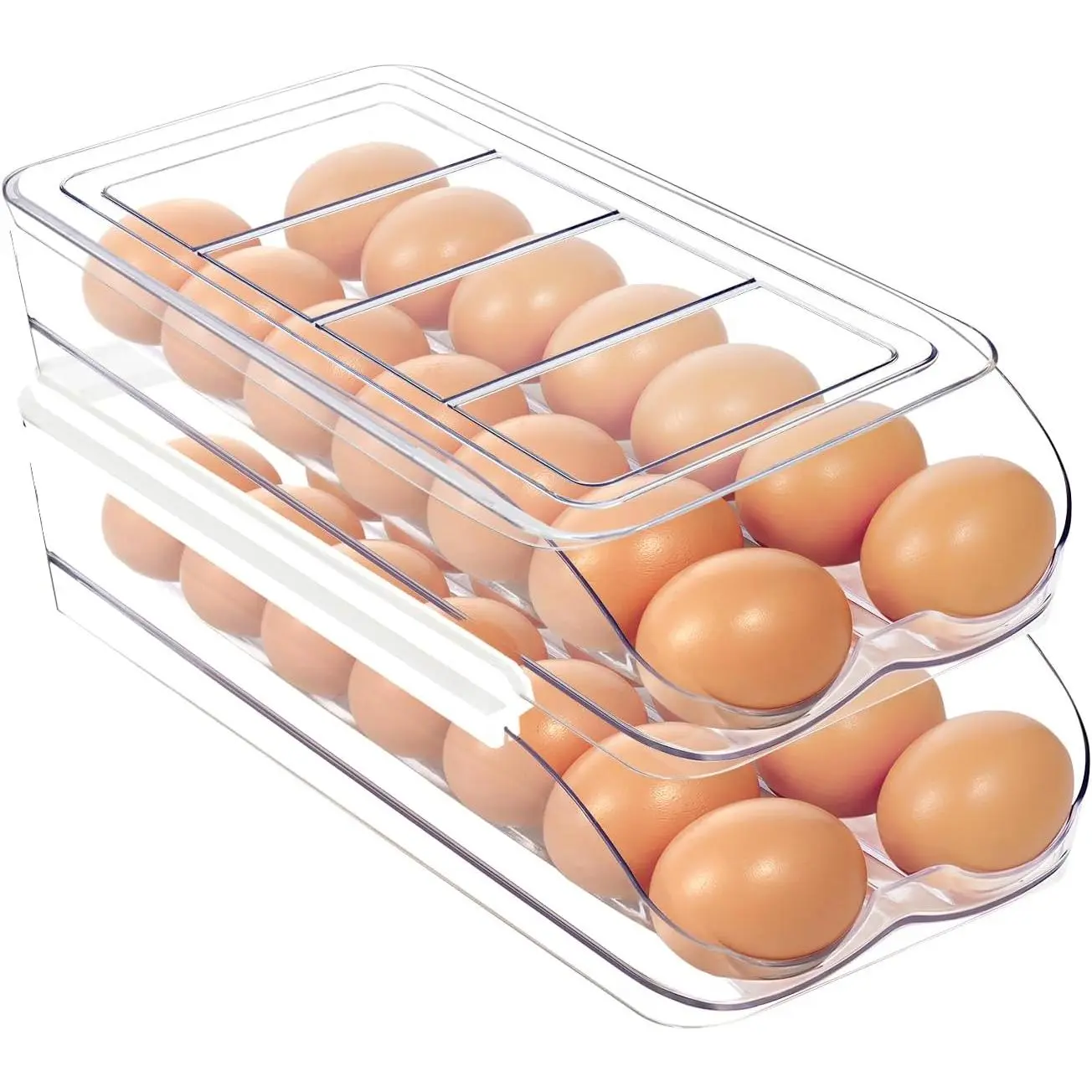 Egg Holder for Fridge, Automatic Rolling Egg Organizer for Refrigerator, Clear Plastic Egg Container & Tray, Stackable Dispenser and Storage Bin with Sturdy Lid to Saving Space -2 Layer