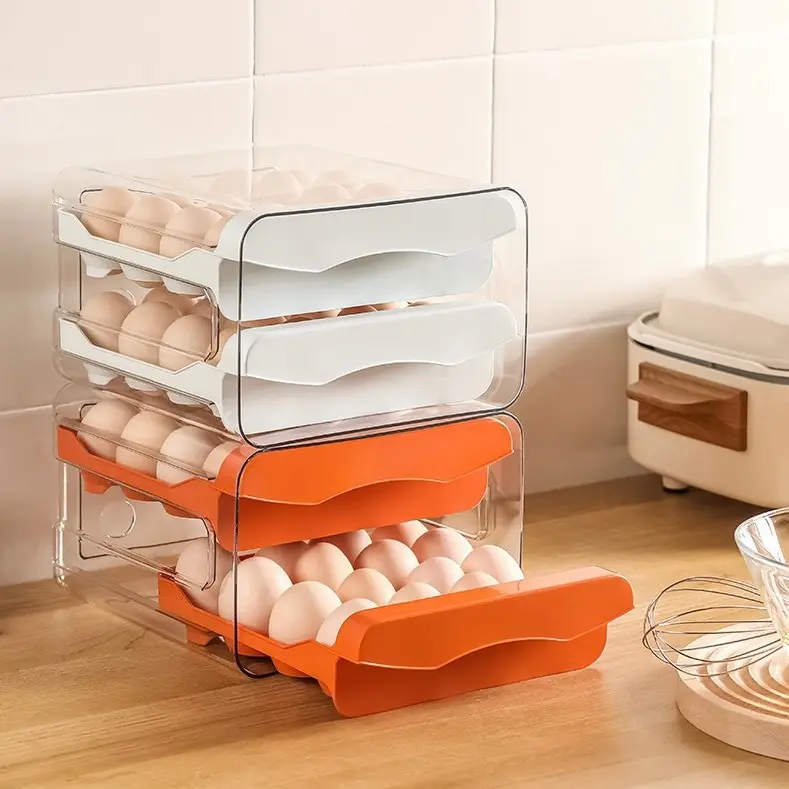 Egg Organizer Container for Fridge - Refrigerator Storage Holder Tray: Eggs Plastic Drawer Bins, Clear Box, Stackable Large Containers Refrigerator Organizer Bins,60 Grids Egg Container for Refrigerator,2Layers Egg Tray, Clear Egg Organizer,Kitchen Gabget