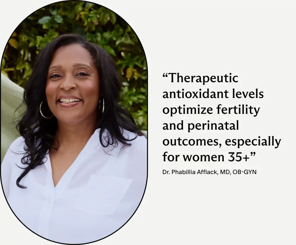 Targeted and expert-formulated antioxidants for egg quality and related fertility outcomes. Our formula also supports long-term mitochondrial health.