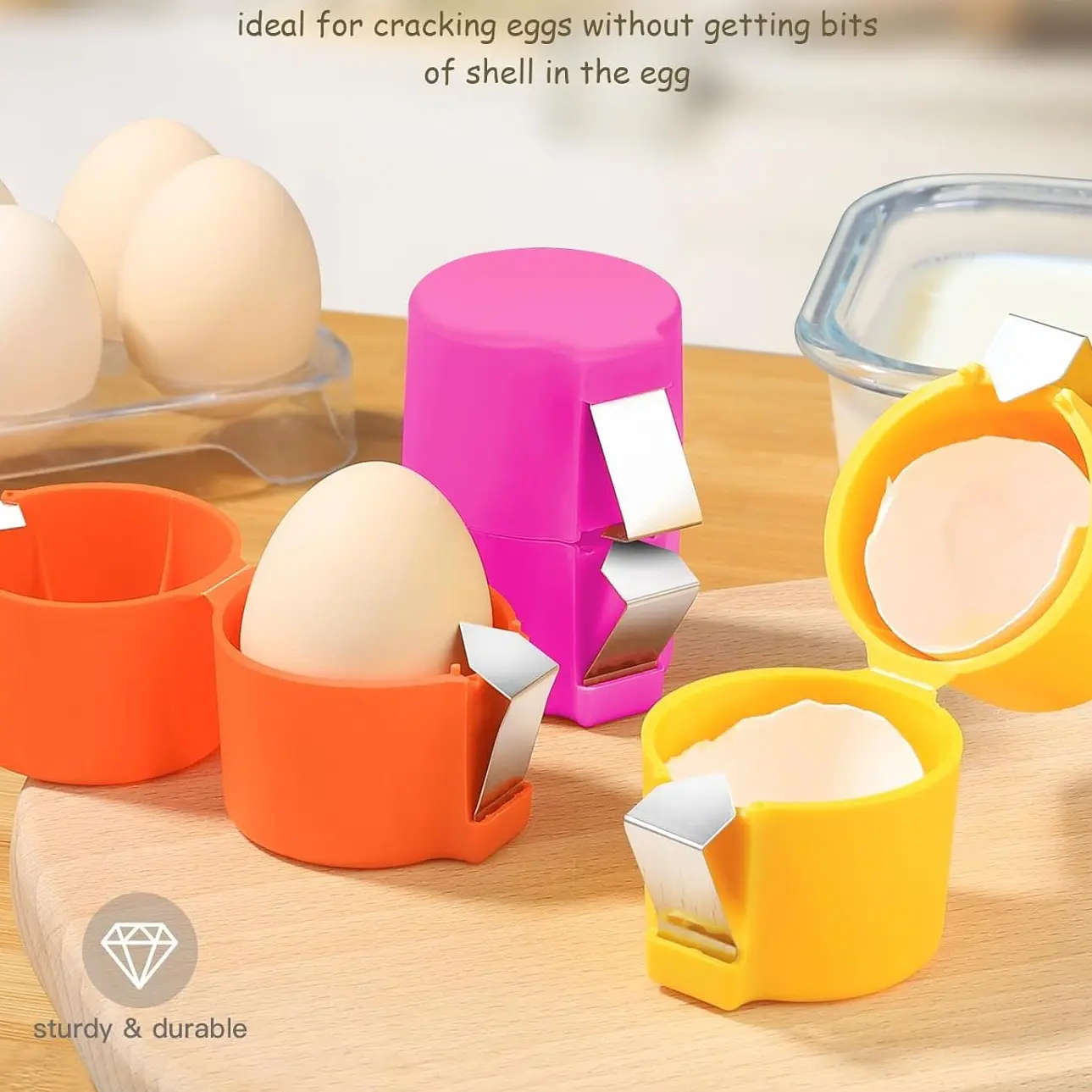 Upgrade your kitchen tools with this practical egg cracker set. 🍳