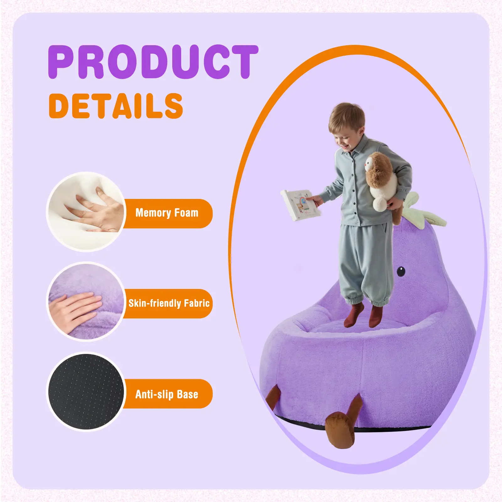 🌿 Skin-Friendly Fabric 🌿 - Material: Made of soft, skin-friendly, safe, and environmentally friendly plush fabric. - Filling: Filled with high-resilience crushed sponge for a comfortable touch and good resilience. - Bottom: Made of drip plastic fabric with anti-slip properties for safety.
