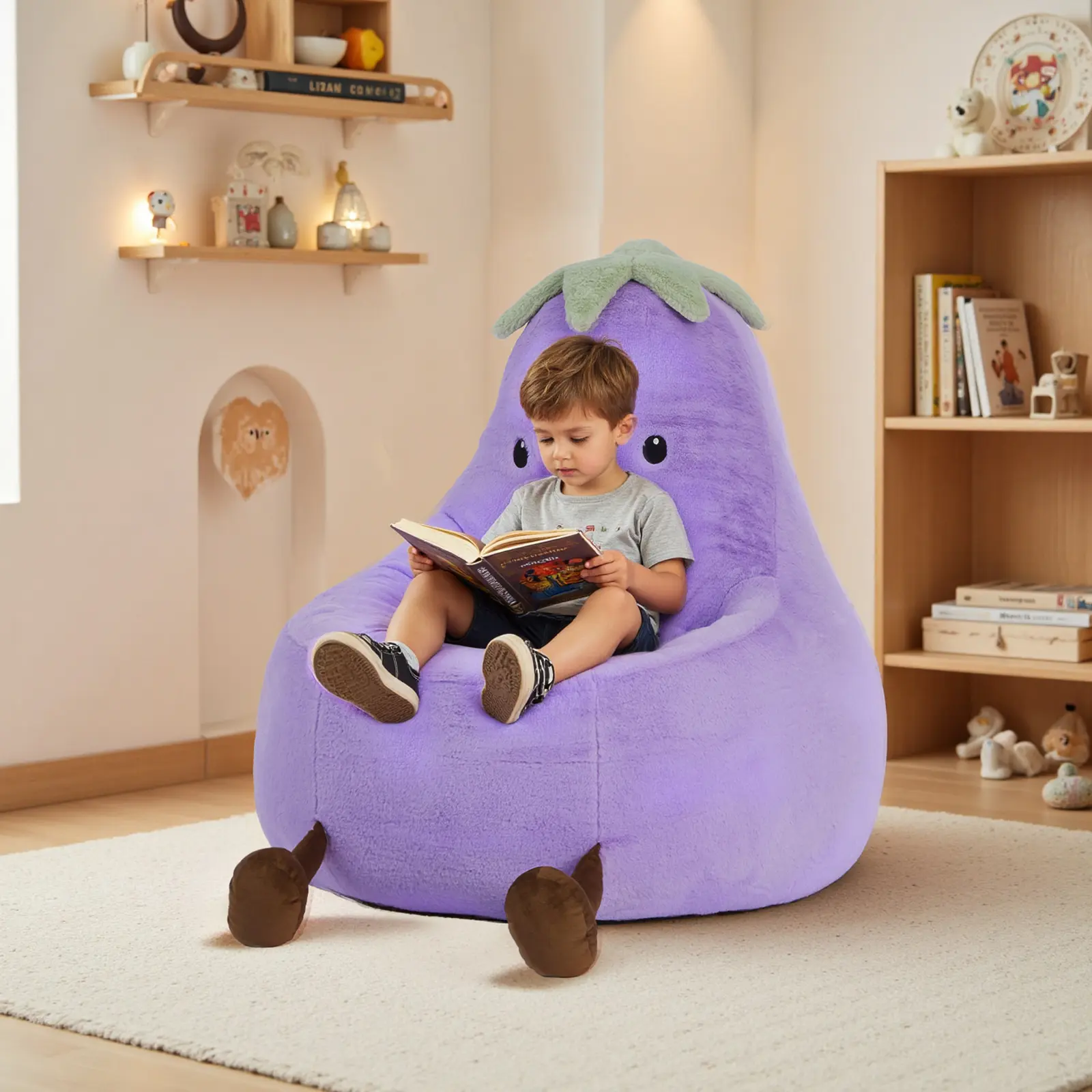 🌟 Cute Eggplant-Shaped Kids Chair 🌟 - Design: Adorably shaped like an eggplant, this chair is a favorite among kids. - Sizes: Available in two sizes to fit your needs. - Colors: Choose from multiple colors to match your decor. - Comfort: The kids sofa is comfortable and durable, perfect for reading, playing, and resting. - Joy: Brings true joy to your child, making it a delightful addition to any room.