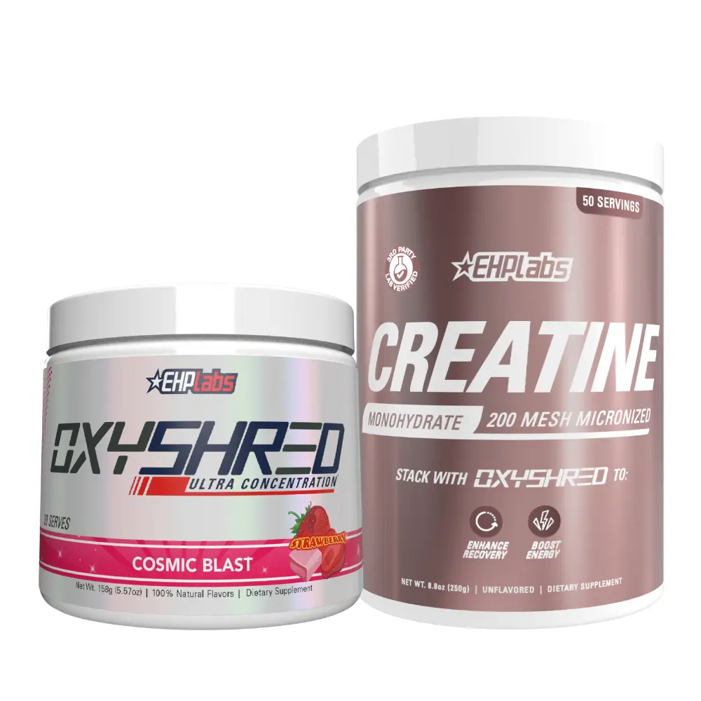 EHPlabs OxyShred 33 Serve Pre Workout and Creatine Monohydrate Stack | Performance and Strength Support Stack | Pre Workout Powder with Pure Creatine to Support Energy Production, Power Output and Training Performance