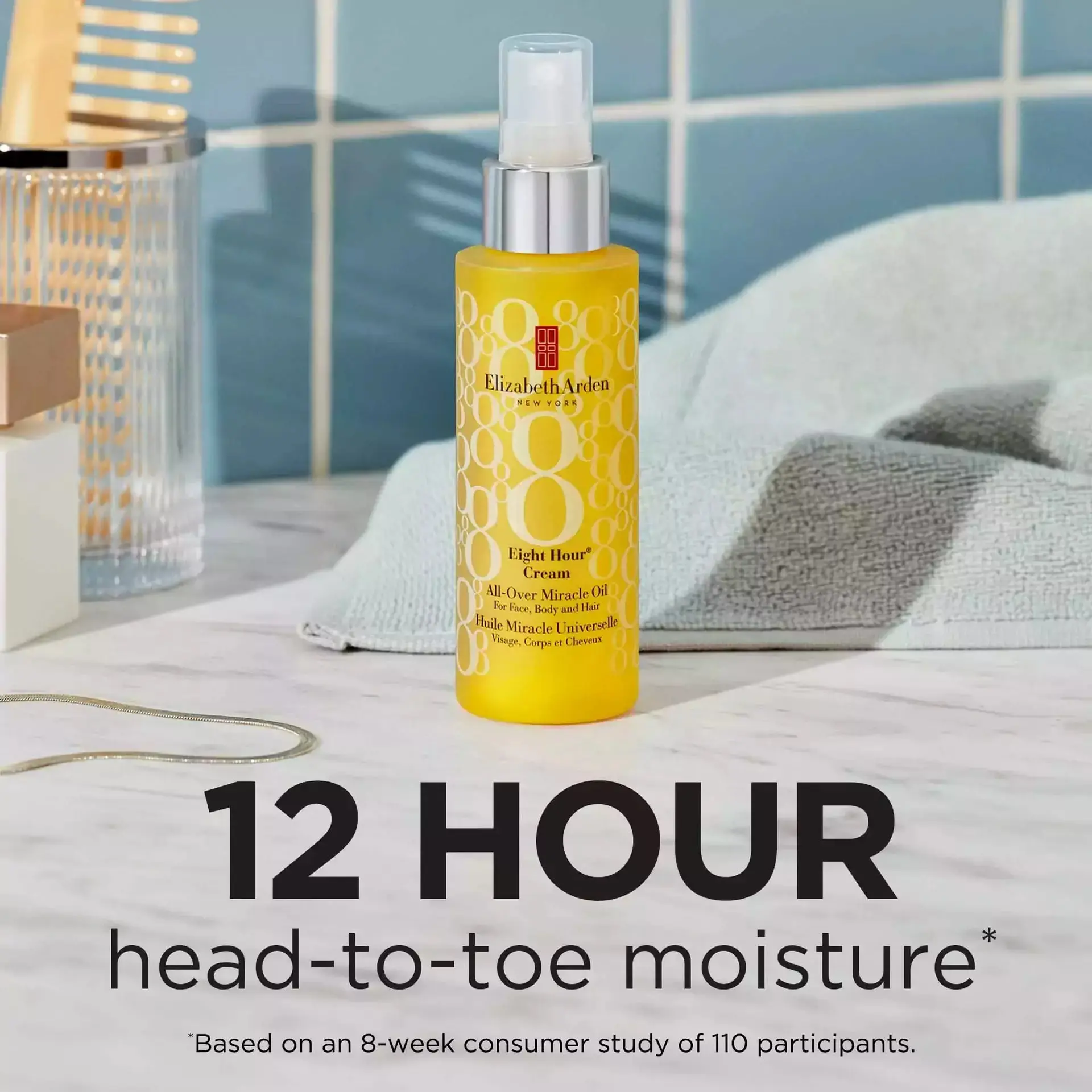 Providing luxurious, head-to-toe conditioning benefits to the body, face and hair and clinically proven to moisturize for 8-12 hours, Eight Hour® Cream All-Over Miracle Oil is the 'all you need' product in one sleek bottle. Catering to the at-home spa experience, Eight Hour® Cream All-Over Miracle Oil is delicately scented with a light floral fragrance accord that promotes a sense of well-being.