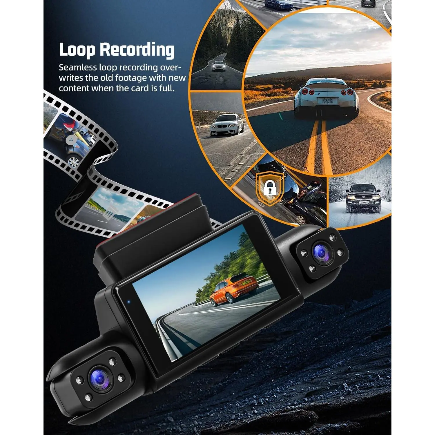 3) Loop Recording. The car recorder has a loop recording function, even if the SD card is full, it will automatically overwrite the oldest video. But the locked video will not be overwritten. In this way, every second of your driving will be recorded and you won't miss any wonderful moment.