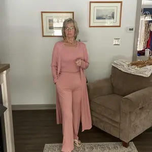 I love these 3 piece sets! I love that they are so comfortable and cute. I like that I can wear it at home to lounge or dress it up and wear it out! I got 2 colors I love the colors and they are so soft! I wore my first this weekend since we got your first front and I love it! Winner I need more!