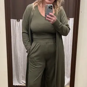 I love this set. I have it in several colors and will get more. Comfortable, fits well, and it has pockets. The perfect outfit for spring or cool summer nights.