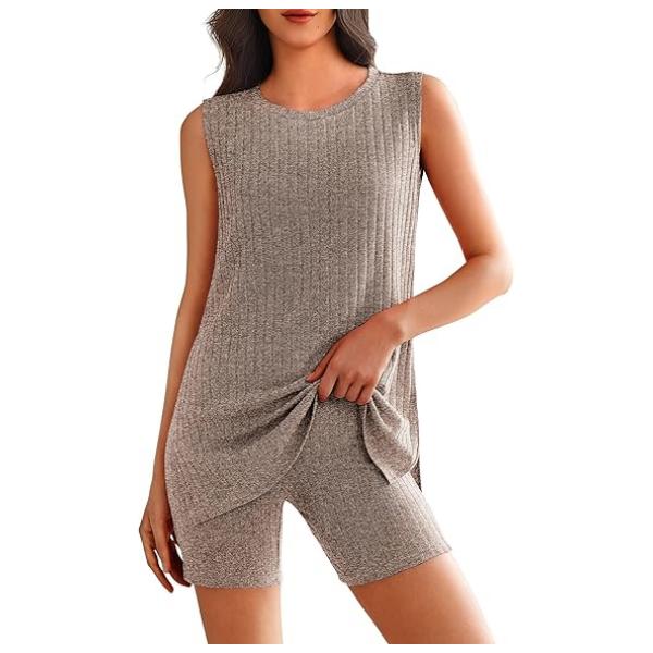 ·MATCHING: This 2-piece summer set for women offers a perfect slim fit. The ribbed tops pair effortlessly with skirts, leggings, skinny pants, jeans, or even other pajamas. The knit shorts can be styled with any t-shirt for a casual, everyday look, making it a versatile addition to your wardrobe