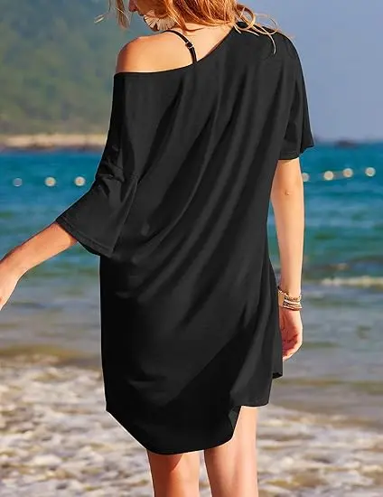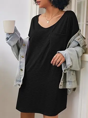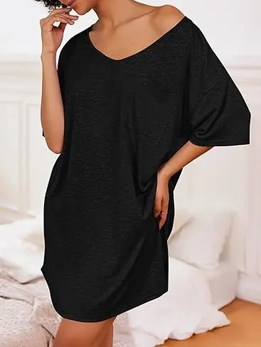 ·Boyfriend style womens T-shirt lounge dress designs knee length,loose and casual provides you enough room to move .Comfy and Sexy Flattering,As You Want Loose Fit Style, One Shoulder, Off-The-Shoulder, V Neck, Loose Tee Shirt Nightgown Tunic Look, Oversized Nightdress