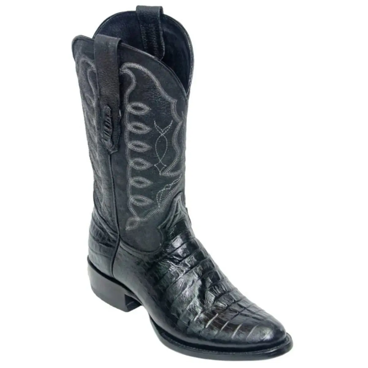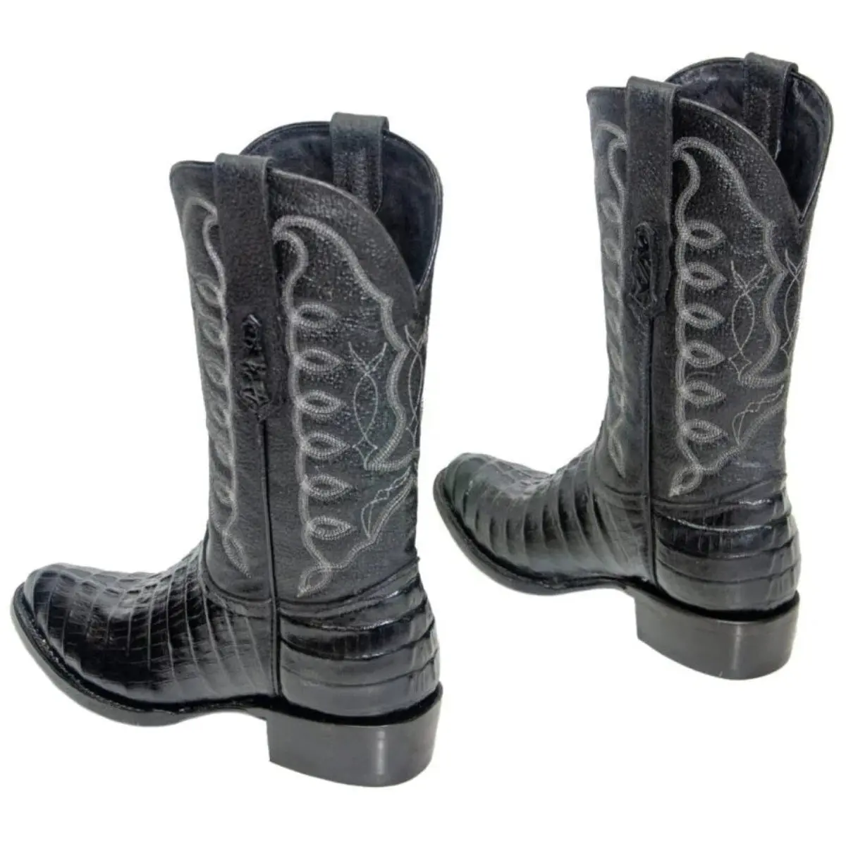 5. El Reparo Men's Print Caiman Tail Round Toe Boots - Black