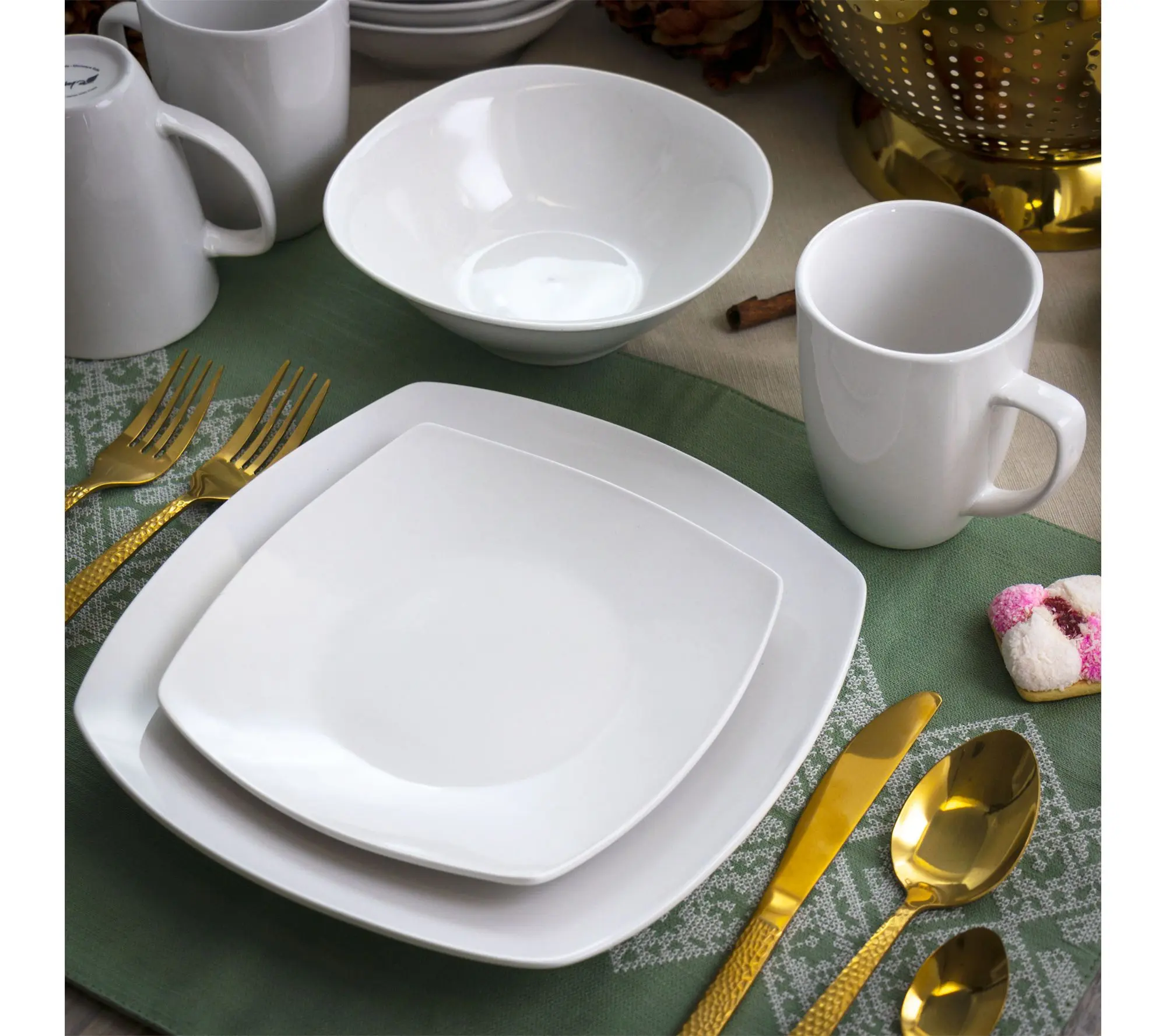 5. Elama Bishop 16 Piece Soft Square Porcelain Dinnerware Set