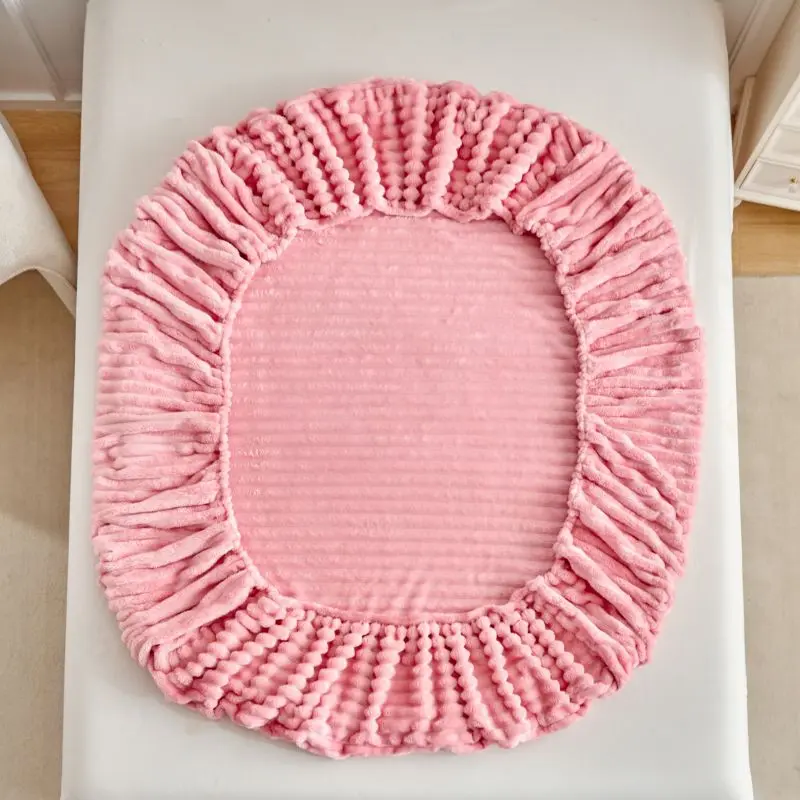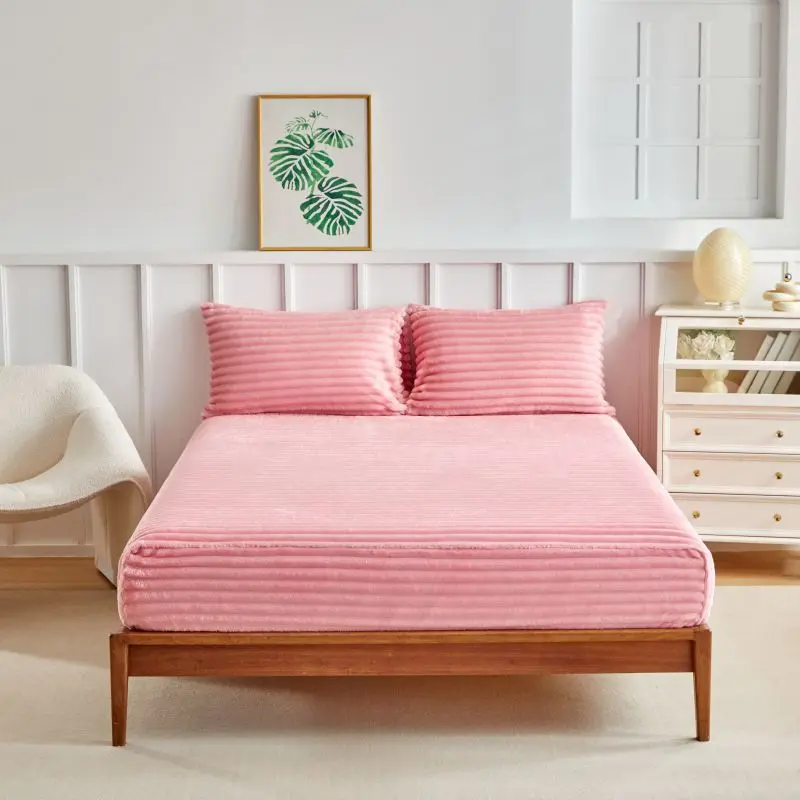 3.3 Inch Elastic Bed Sheet Set, Deep Pocket Design Fitted Sheets, Polyester Fiber, No Print Style, Thick Velvet Fabric, 11.81 Inches Tall
