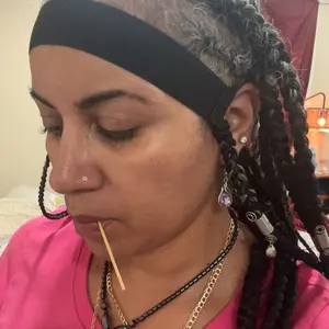 wish the band were longer in width cause i have to put to on and sometimes leaves a line but i love it doesnt bother my industrial 😌