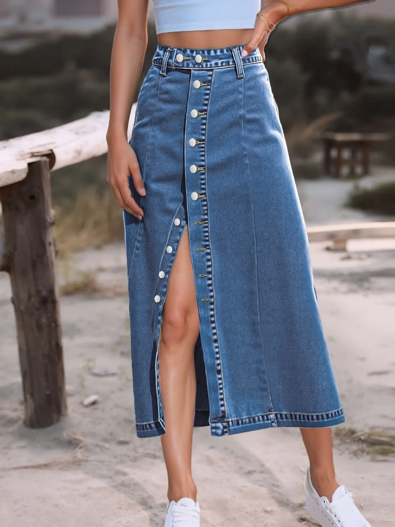 【Distinct Button Closure】: Featuring a button fly closure, this skirt offers a unique and secure fastening choice.