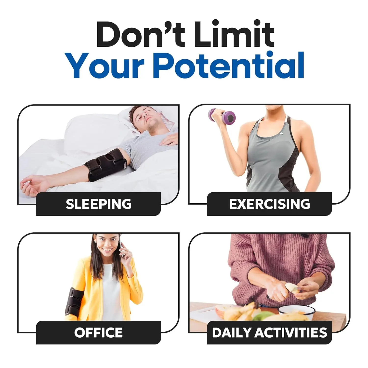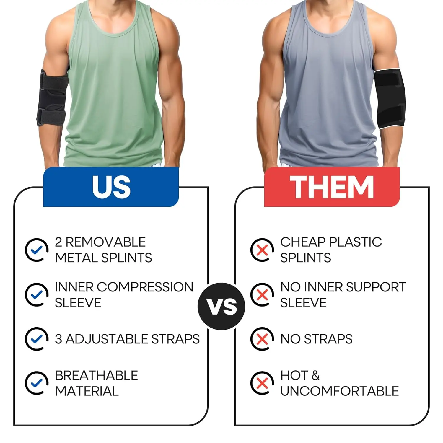DUAL ADJUSTABLE SPLINTS: Removable elbow splints help align and straighten your elbow joint.Lightweight and breathable with inner elbow compression sleeve for night time or all day wear.Our brace is for women and men and fits both elbows.