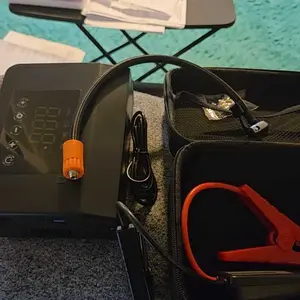 ·【WHAT YOU GET】 1 x Smart Air Pump, 1 x Air Tube(60cm/23.6in), 1 x Inflating Needle, 1 x Inflatable Nozzle, 1 x Pesta Valve, 1 x Emergency Start Power Clip, 1 x Type C Cable, 1 x User Manual. 18 months warranty and lifetime tech support. If you have any after-sales questions about jump starter, please feel free to contact us.Note: Please do not use the air pump function continuously over 6 minutes. When the tire battery compressor is seriously hot, please cool down for a few minutes before continuing to inflate the tire.