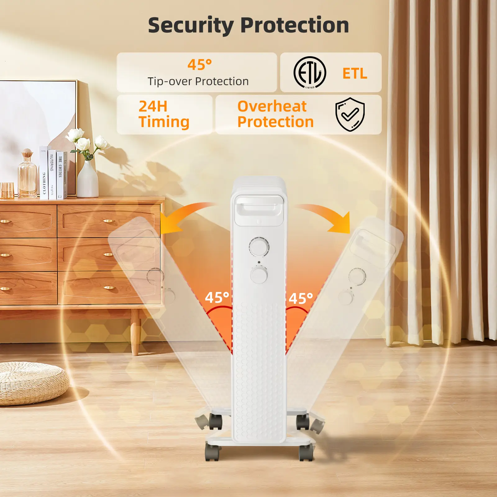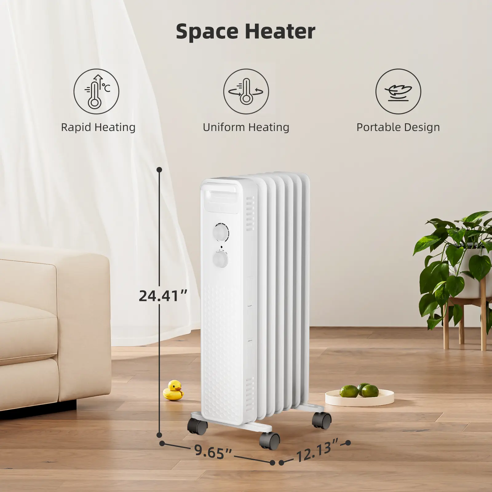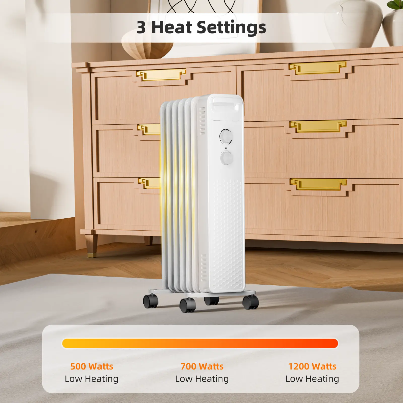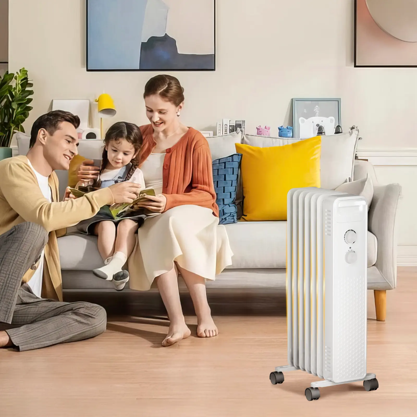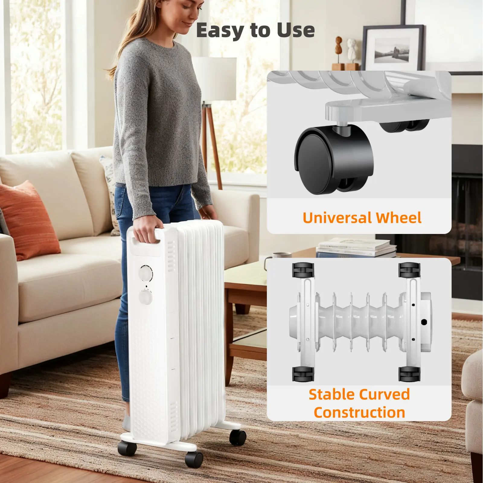 ·Powerful & Efficient HeatingExperience rapid and widespread warmth with our 1500W oil-filled radiator. The advanced 7-fin design, coupled with a special fin structure, maximizes heat output and retains heat longer, ensuring energy-efficient comfort for your entire room. Choose from 3 power settings to match your desired temperature.