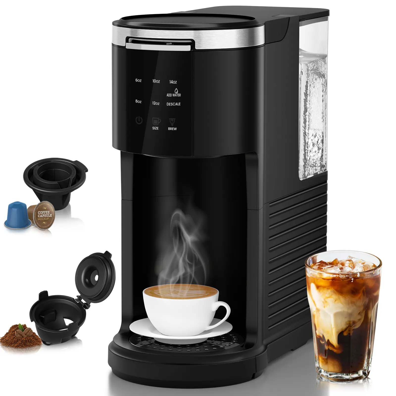 【Efficient Size Select Function】 It has a brew size button (6 oz., 8 oz.,10 oz.,12 oz., or 14 oz.), which can fit the different containers, such as coffee cup and water bottle.