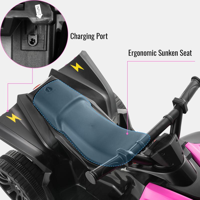 SAFE & ASTM CERTIFIED: Kid ride-on ATV is made of sturdy PP material for long-term use. Kid electric vehicle is ASTM-certified to ensure safety of children. Electric car is a good partner that children can trust as they grow and play.
