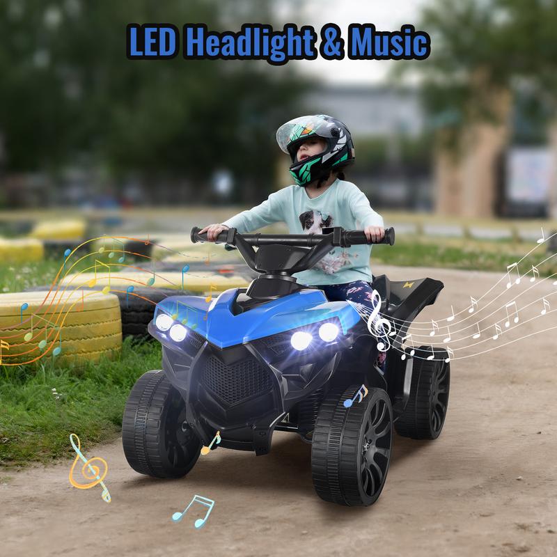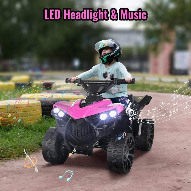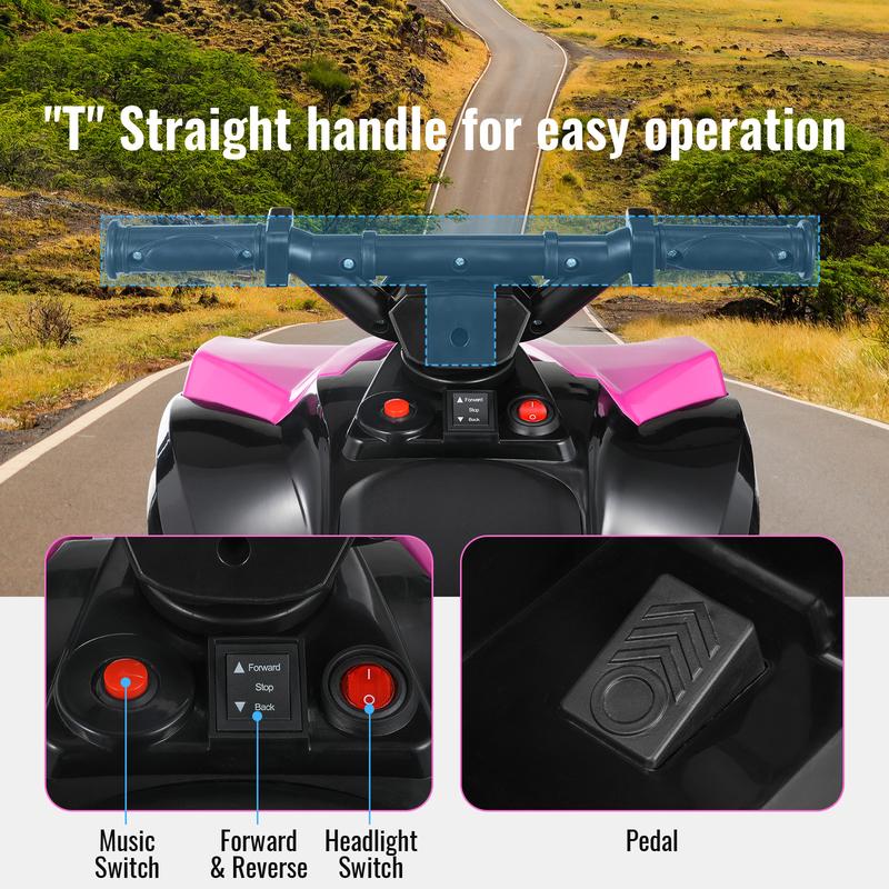MUSIC & LIGHTS: Kids 4 wheeler has a cool off-road appearance. Electric ATV car features a built-in music player and bright LED headlights, enhancing the riding experience and making adventures more enjoyable, especially during low-light conditions.