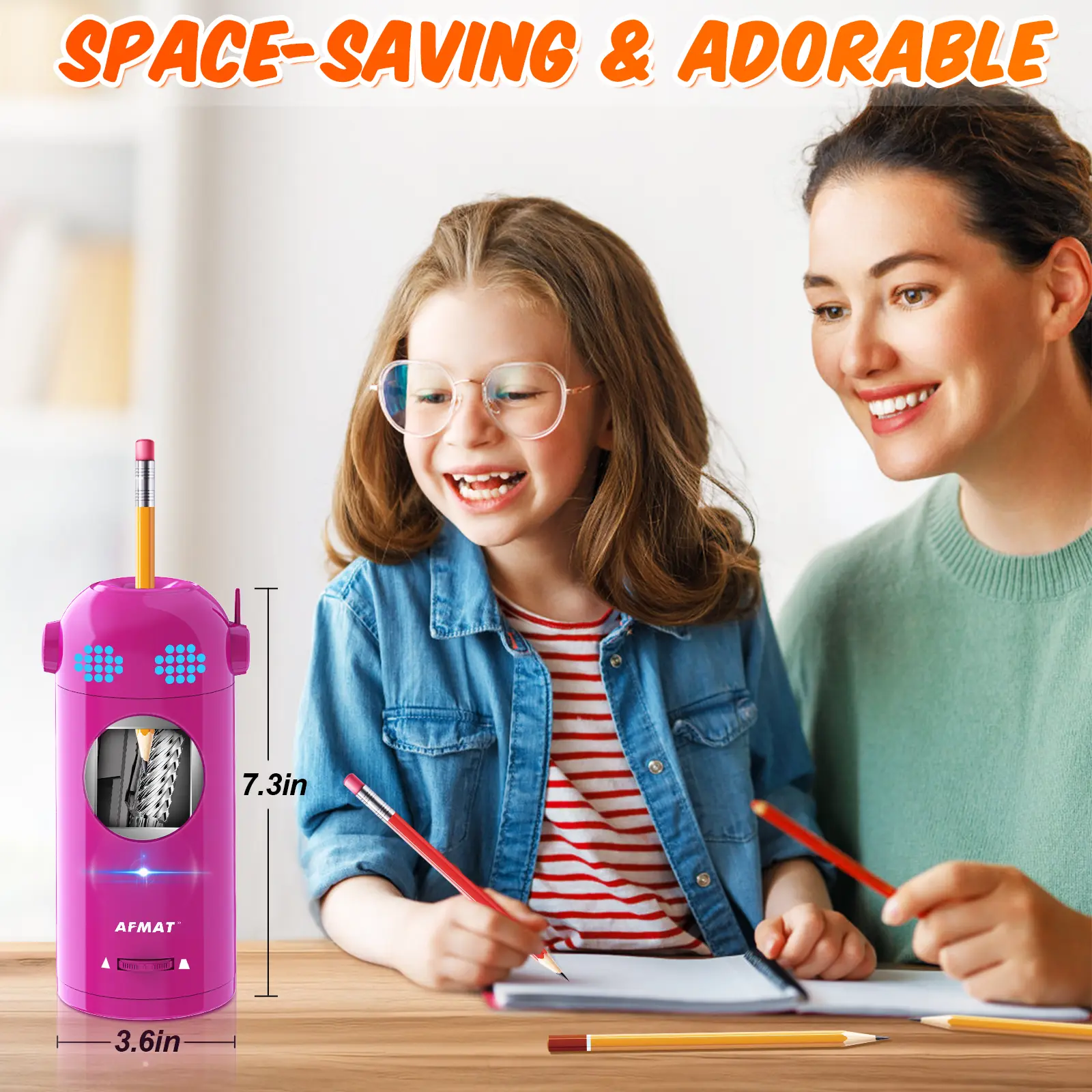 Just insert your pencil and let the robot do the rest! It auto-detects, sharpens, and ejects your pencil when the point is perfect. Zero manual effort. Zero hand strain. Totally kid-safe.