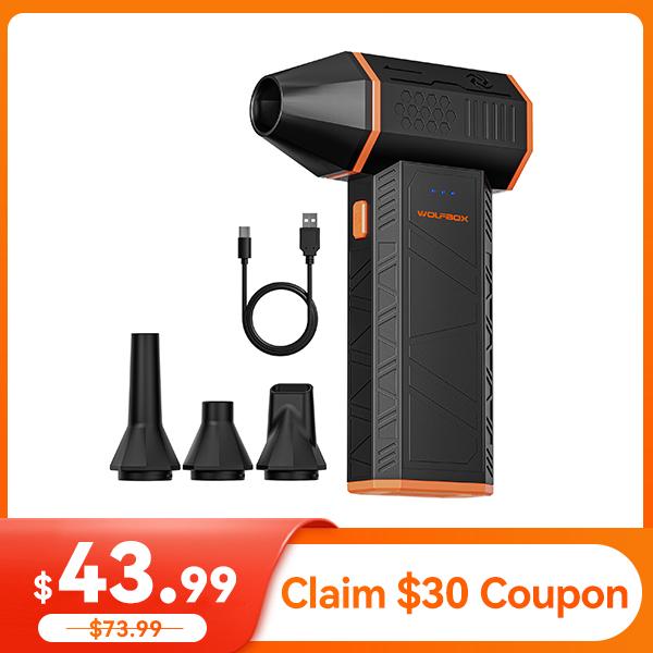 WOLFBOX MegaFlow50 electric air duster reaches speeds of up to 110,000 RPM. It effectively removes dust and debris. It features three adjustable speed settings to suit different cleaning tasks. This ensures you can tackle various cleaning needs efficiently.