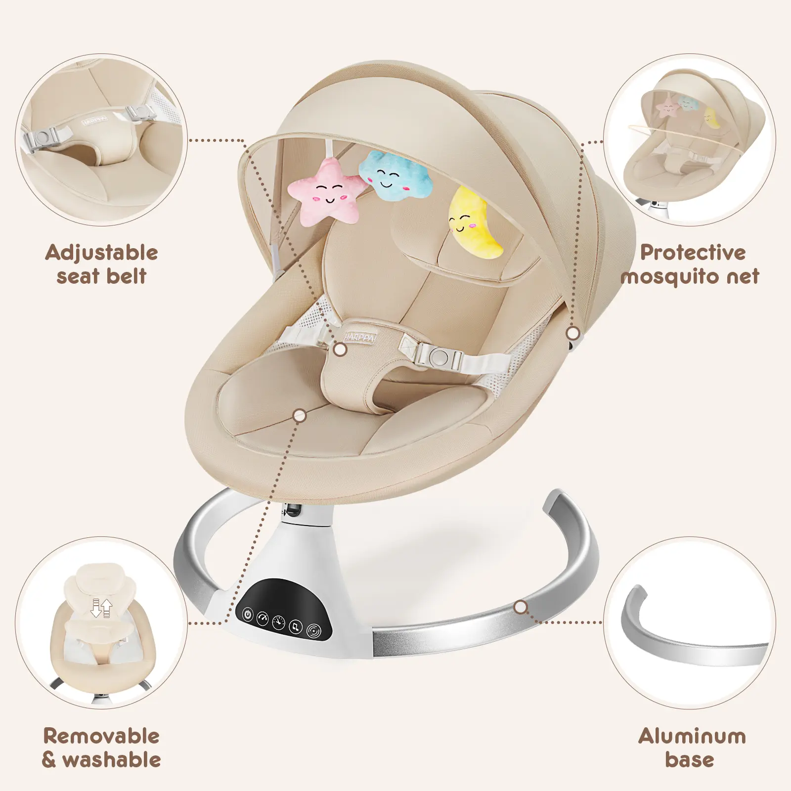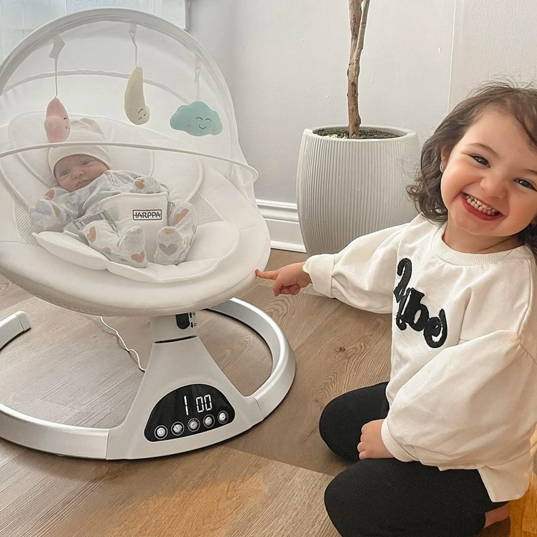 Excellent value and design, soothes quickly, saves my arms, and looks nice in the living room. Would absolutely buy again.
